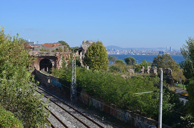 The Palace of Boukoleon, which overlooked the Propontis, had its own harbor (the limen of Boukoleon) with a flight of marble steps leading down to the emperor’s ship. It took its name from an ancient statue located at the harbor depicting colossal figures of a lion attacking a bull. It is not known when the statue of the lion and bull was brought to the site, though it is known to have survived until the 16th century. A tower once used as a lighthouse is located on the sea walls to the east.